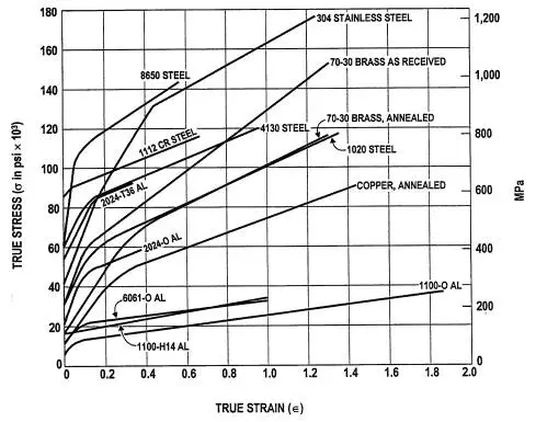 圖6 多種真實(shí)金屬材料的真應(yīng)力真應(yīng)變曲線