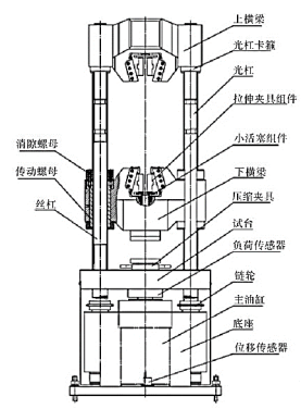 典型的電子萬(wàn)能試驗(yàn)機(jī)系統(tǒng)可以分解成機(jī)械系統(tǒng)、伺服系統(tǒng)、測(cè)量系統(tǒng)、控制系統(tǒng)四大模塊。機(jī)械系統(tǒng)包括機(jī)架機(jī)構(gòu)、傳動(dòng)機(jī)構(gòu)、執(zhí)行機(jī)構(gòu)和夾具,伺服系統(tǒng)包括伺服控制器,測(cè)量系統(tǒng)包括光電編碼器、引伸計(jì)、力傳感器,控制系統(tǒng)包括下位機(jī)(單片機(jī))和上位機(jī)(PC),四大模塊都由伺服電機(jī)帶動(dòng)。