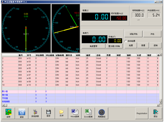 記錄沖擊強(qiáng)度,沖擊能量等.也可計(jì)算最大最小平均值和標(biāo)準(zhǔn)偏差。