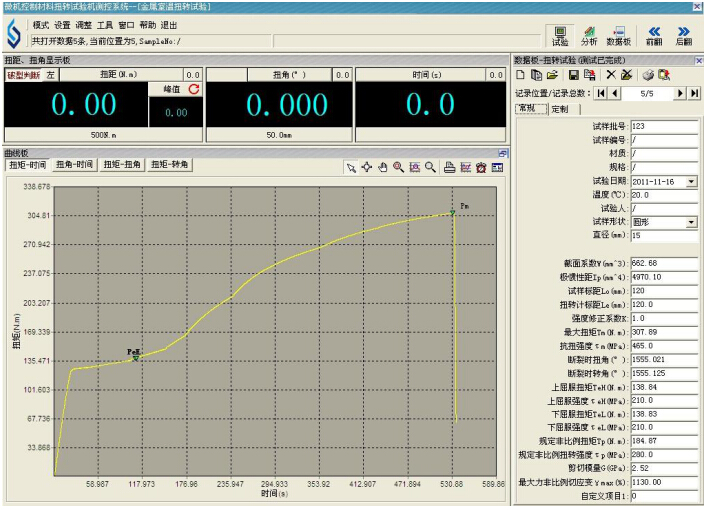 ⑥可以檢測試件的屈服點τs、上屈服點τsu、下屈服點τsl、抗扭強度τb等。扭矩和扭轉角自動跟蹤測量,并顯示試驗曲線。顯示試驗的扭矩值、扭轉角、扭轉速度。 試驗結束后,自動進行試驗數據處理,能自動求取材料的切變模量G、規定非比例扭轉應力τp、屈服點、上屈服點τsu、下屈服點τsl、抗扭強度τb等性能參數。能根據用戶要求可隨意編制報告格式并可輸出打印試驗報告。